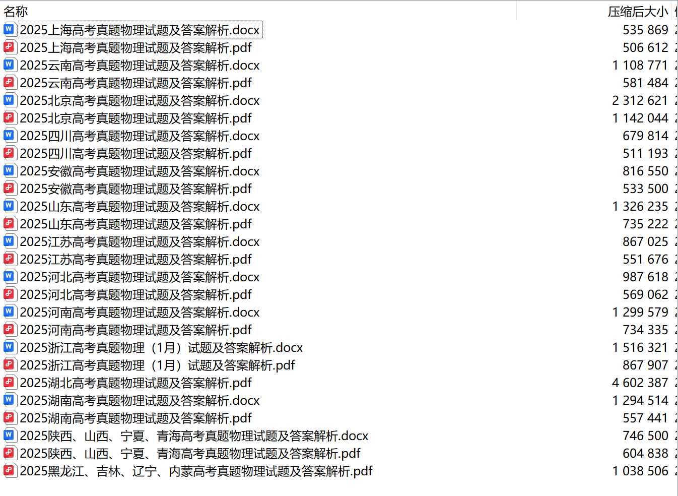 收集和汇总了2025年全国各地各省份的高考物理真题试题及答案解析,一共26个文件,大部分省份的高考真题都有word版本以及pdf两个版本,个别省份目前只有pdf版本,这些省份的试...