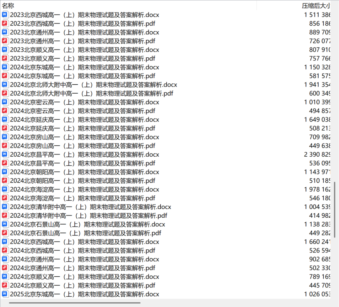 在2026年期末考试来临之际,现在把过去的2021年到2025年北京地区各个区统考以及各个重点学校,比如人大附中,清华附中,北京二中等重点学校的期末考试试题分享给大家,供大家复习使用。资料以压缩包的形式呈现,本资料包里一共包含了166个文件,资料包里的每份试题都包含了pdf和可以编辑的word版本,供大家按照需要使用。资料收集和整理不易,会收取一定的费用,有需要的可以付费获取资料下载地址。